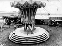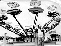 | 1978 präsentiert der Sohn Lorenz Böhm - Jahrgang 1957 - das neue Fahrgeschäft "Hully Gully" aus Italien. Im Vordergrund das Kinderkarussell aus den 70er Jahren. | ![]() |